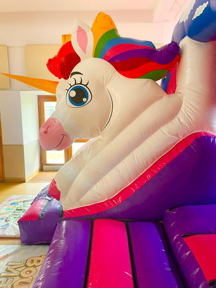 Double the Unicorn fun with our twin Unicorn Bounce N Slide.. it is a medium sized castle and although it will fit in most indoor venues, please be sure to double check your available space. We have plenty of Unicorn soft play options to go with this castle so why not add that to make it the complete package.