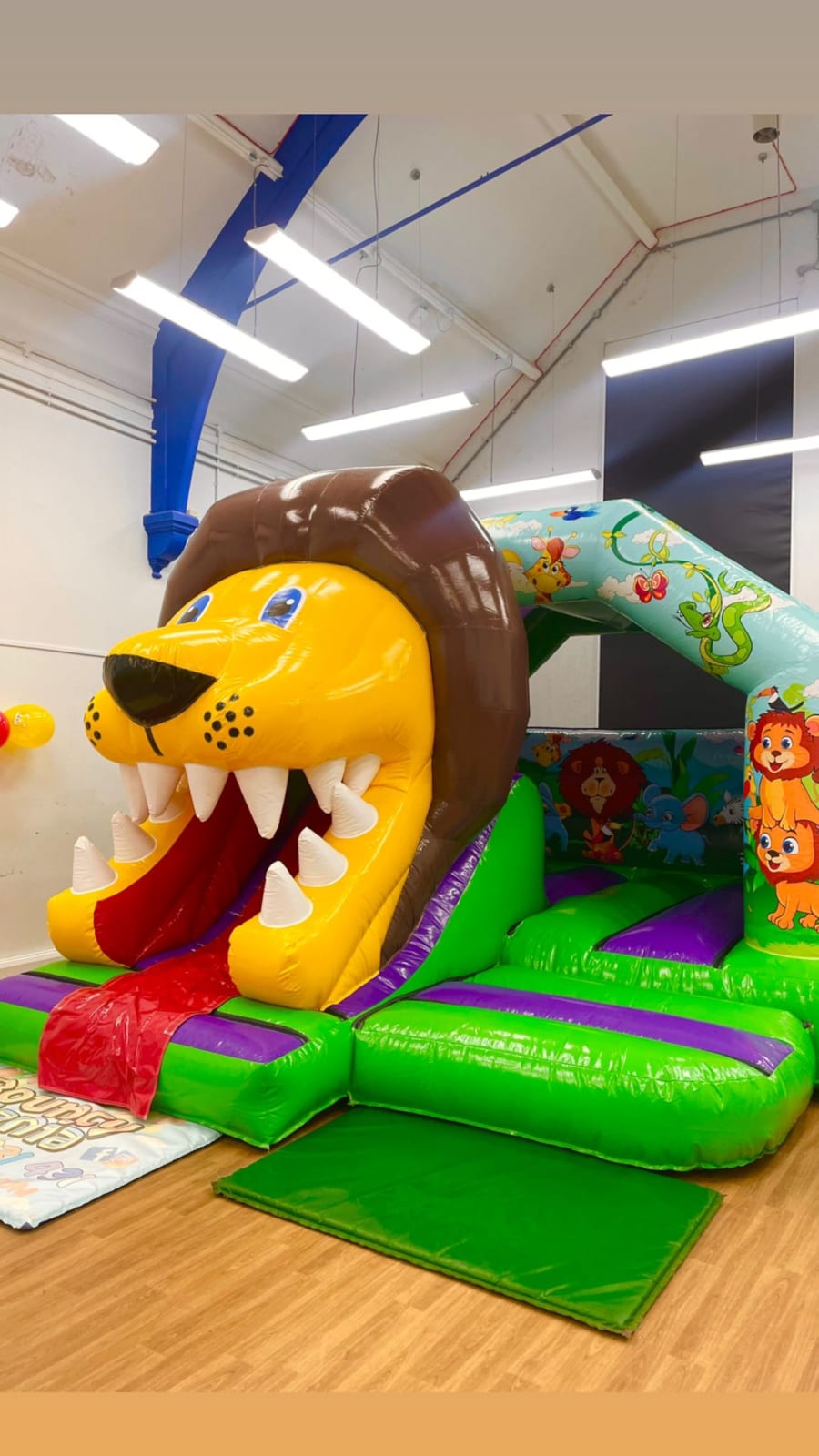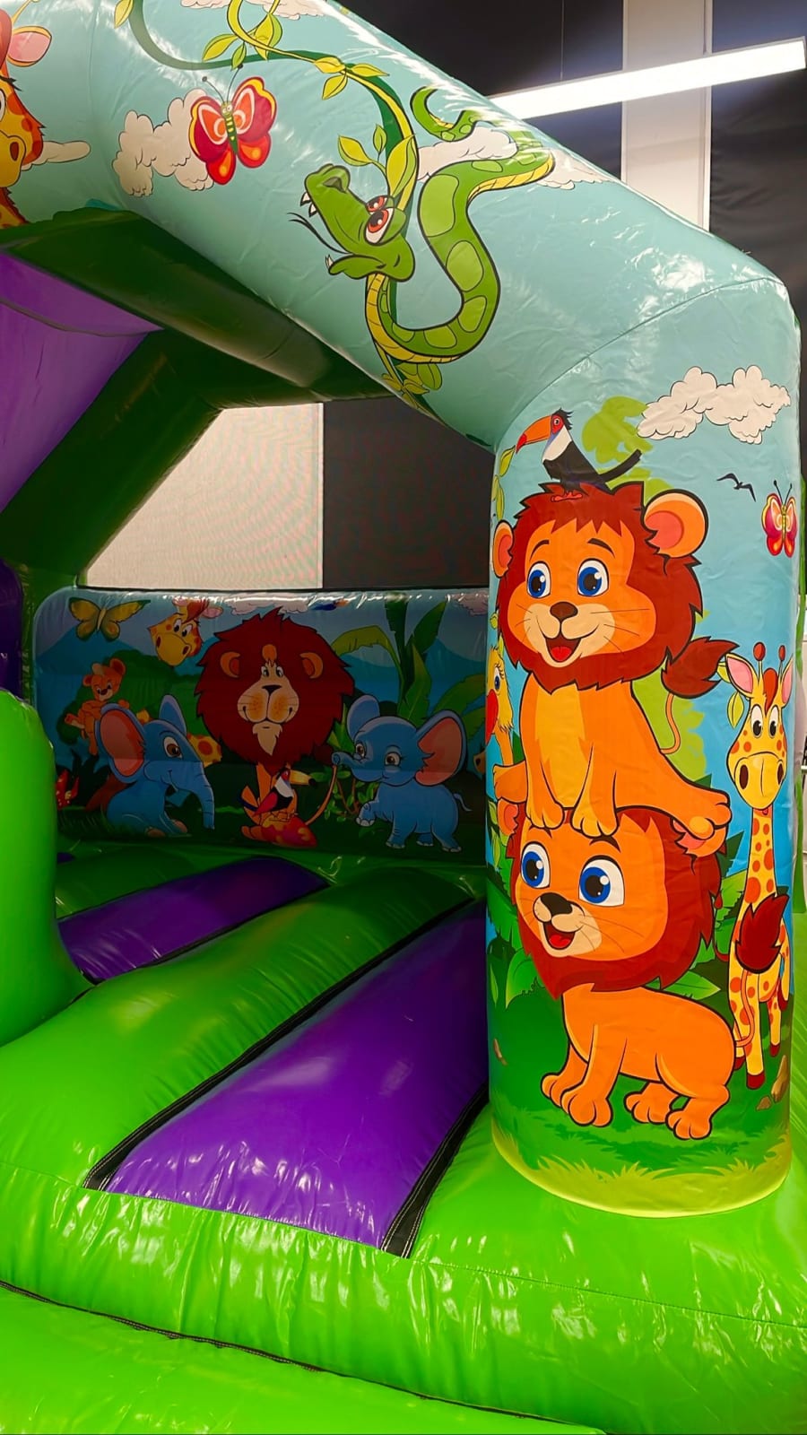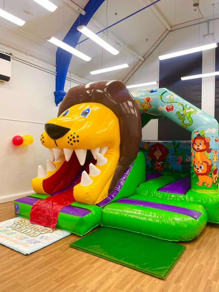 Regarded as the King of the jungle, our lion Bounce n Slide is the perfect choice for any jungle themed parties. it is a medium sized castle and although it will fit in most indoor venues, please be sure to double check your available space.