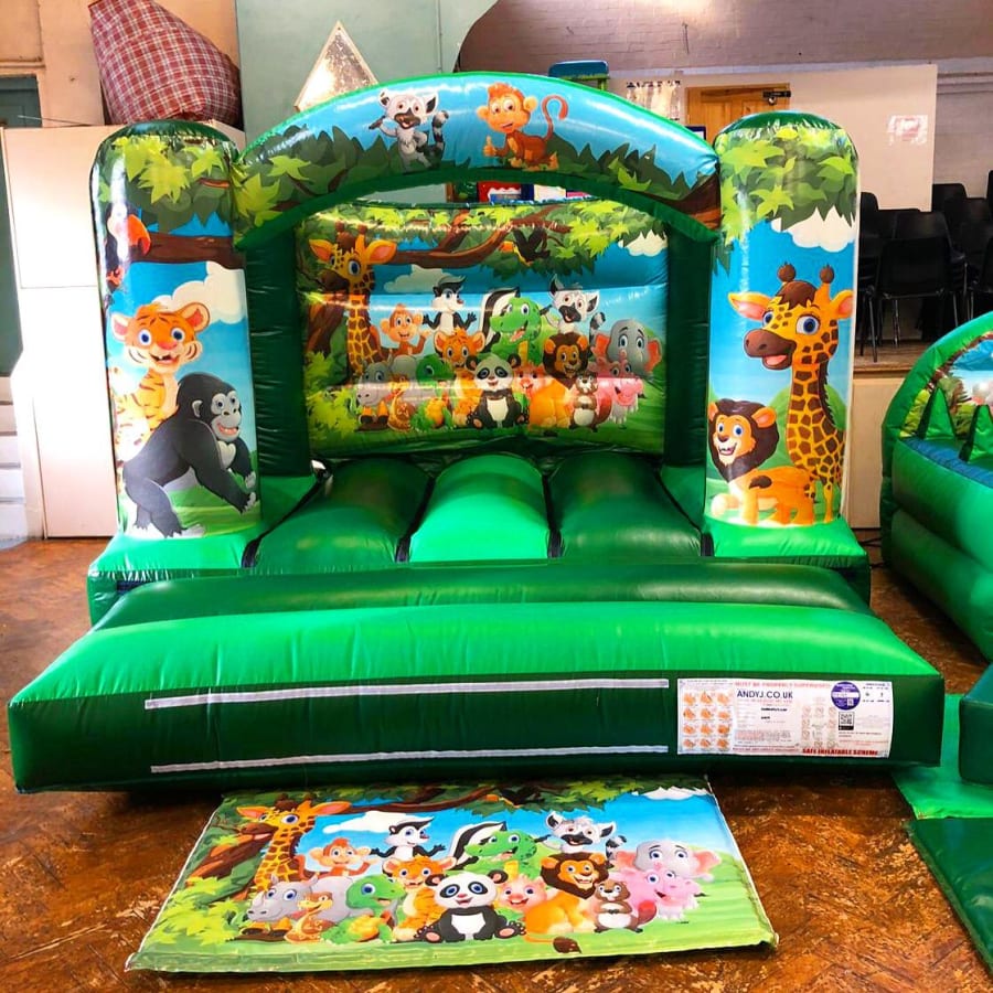 Our Low Height Jungle Castle is very popular due to the beautiful art work and size of the castle which makes it perfect for indoor venues. If you like this then why not upgrade to one of our Jungle packages with matching Air Juggler and Soft play. This castle is suitable for children up to the age of 8 years old.... but is a popular choice for toddlers and younger children due to to the low access height and an open front for an unobstructed view. It is a small/medium sized castle and will fit in most indoor venues, but please be sure to double check your available space. This castle can be booked alongside the matching air juggler and soft play as part of a The Jungle Mania Package.