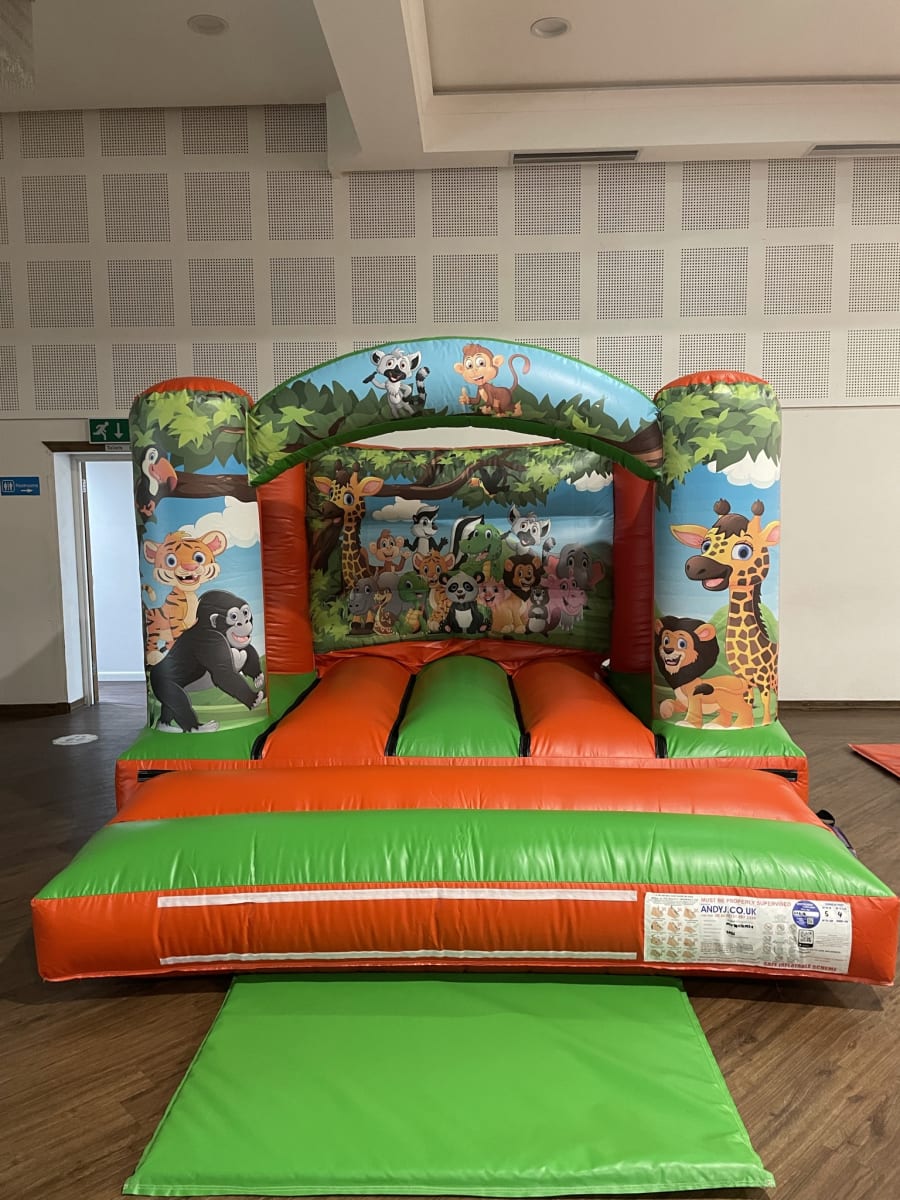 Our Low Height Jungle Fever Castle is a variation to our other jungle castles. If you like this then why not upgrade to the Jungle Fever package with matching Ball pit and Soft play. This castle is suitable for children up to the age of 8 years old.... but is a popular choice for toddlers and younger children due to to the low access height and an open front for an unobstructed view. It is a small/medium sized castle and will fit in most indoor venues, but please be sure to double check your available space. This castle can be booked alongside the matching air juggler and soft play as part of a The Jungle Mania Package.
